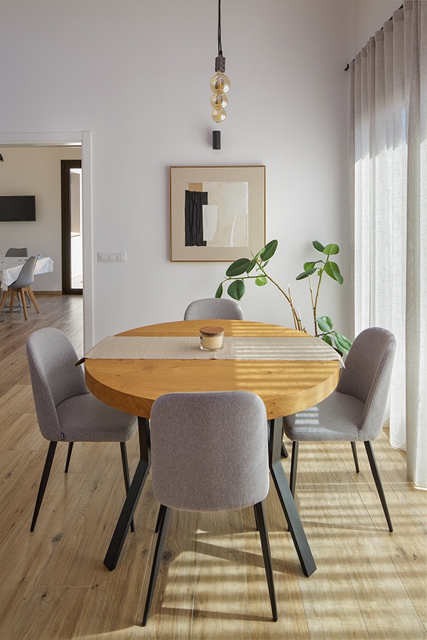 El conjunt combina funcionalitat i calidesa, amb una volumetria que fuig de l’estridència i es fon amb l’entorn, convidant a habitar-lo amb la mateixa serenor amb què la llum recorre cada racó de la casa.